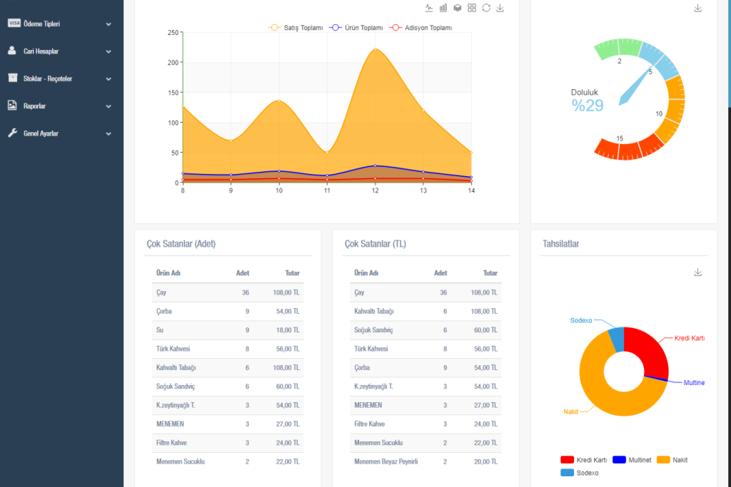 Ödeme ekranında sınırsız sayıda ödeme tipi tanımlayabilirsiniz. Eklediğiniz her ödeme tipi için ayrı raporlar oluşturabilir ve dilerseniz kullanıcı bazında takibini yapabilirsiniz.