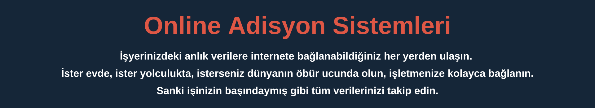 Sınırsız sayıda kullanıcıyla, internete bağlanabilen telefon, tablet, bilgisayar, POS terminali ve hatta televizyon gibi tüm cihazlarla, hiçbir ek ücret ödemeden Online Adisyon Yazılımına bağlanabilir ve yazılımın tüm özelliklerini canlı olarak kullanabilirsiniz.